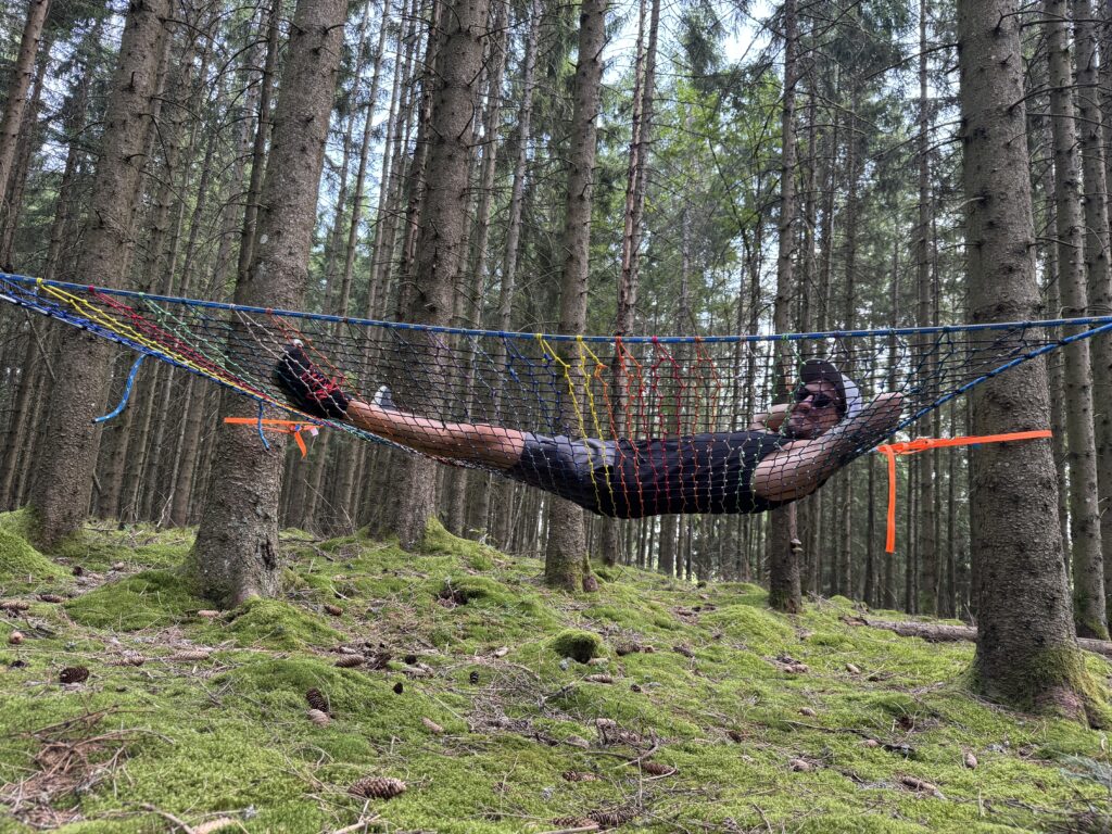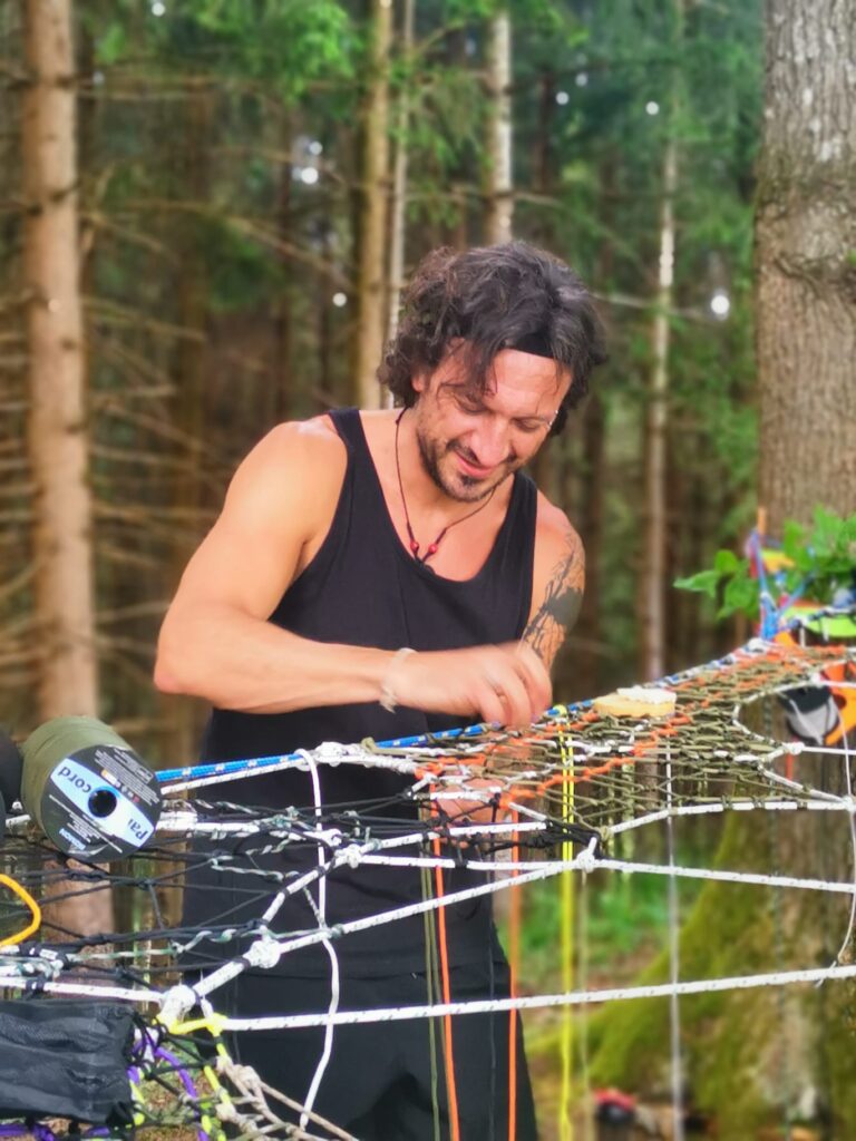 Ich verwende langlebige, hochwertige Materialien: statische Seile mit hoher Tragkraft, Paracord 550 lbs, robuste Verbindungsknoten wie Würgestek, Webleinstek und Ankerstich.