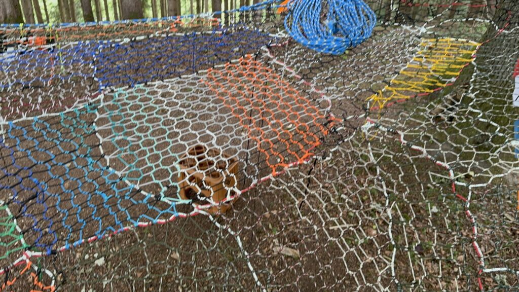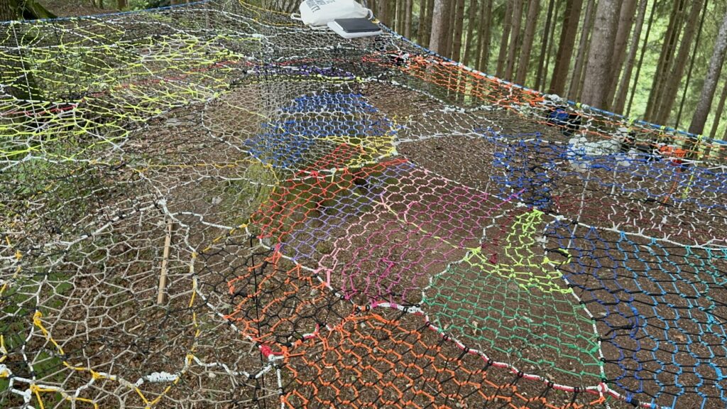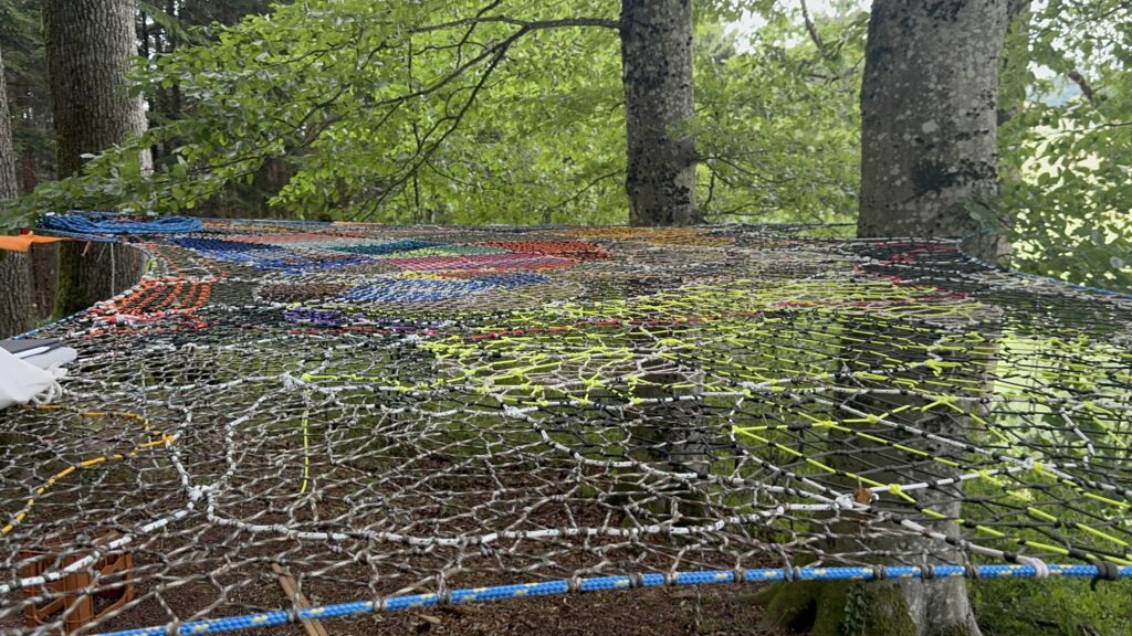 Das große Netz wird von einem äußeren Seilring getragen – einem stabilen Perimeter.